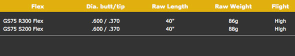 GS75是世界上最轻的钢合金高尔夫杆身。删减了的重量后不到80克的杆身,现在GS75比今天最轻重量的钢杆身已超过15%。建立在S3专营的超强刚度的钢技术平台基础上,GS75超轻盈钢铁杆身的反应部分能最大限度地提升弹道高峰位,距离,力量和手感。适合于目前正在使用纤维铁杆身或寻求超轻型钢优势的球员使用,GS75也提供了改良的击球反应速度,耐用性,性能,和手感。